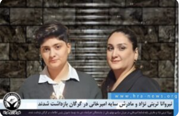 به گزارش خبرگزاری هرانا، ارگان خبری مجموعه فعالان حقوق بشر در ایران، نیروانا تربتی نژاد و رقیه (سایه) امیرخانی بازداشت شدند.