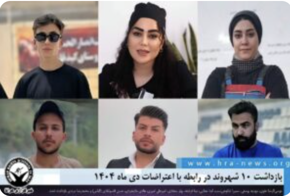 احمد نادرپور، صدیق پریزاد و امیر روشندل، شهروندان اهل شهرستان کلات، روح الله نادری و برادرش سعید نادری، شهروندان اهل شهرستان شهریار، میثم چابک و کامیار رشیدی، شهروندان اهل شهرستان اسلام آباد غرب توسط نیروهای امنیتی بازداشت شدند. تاکنون از محل نگهداری این افراد اطلاعی حاصل نشده است.